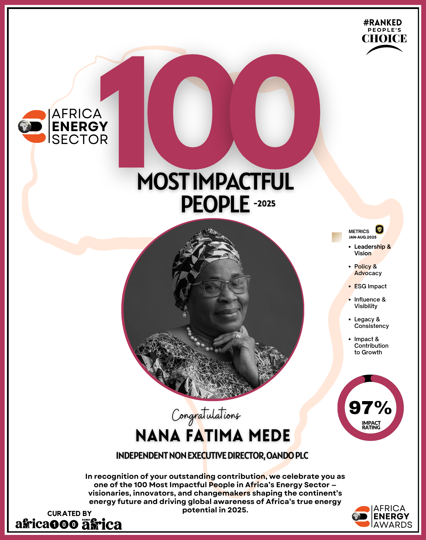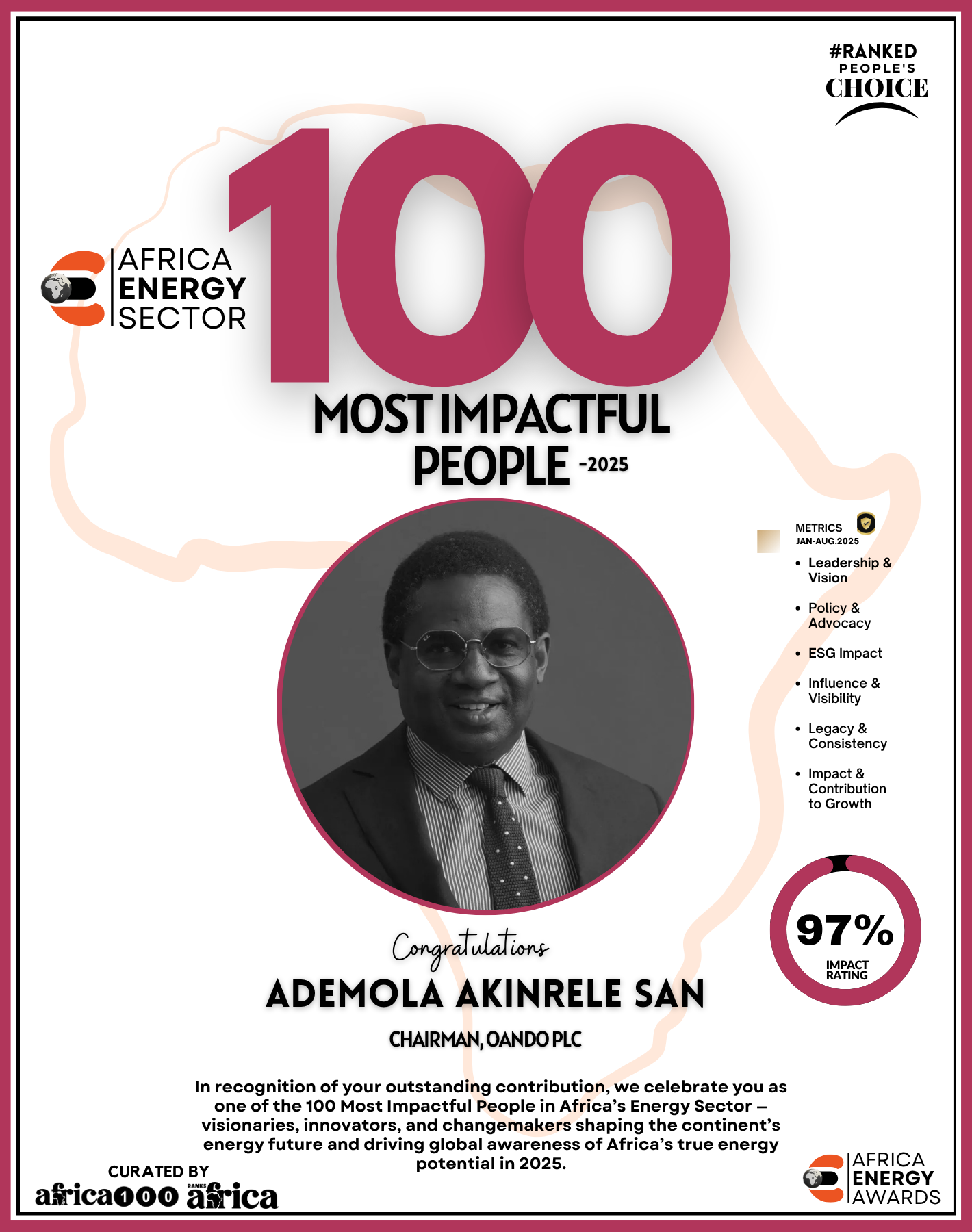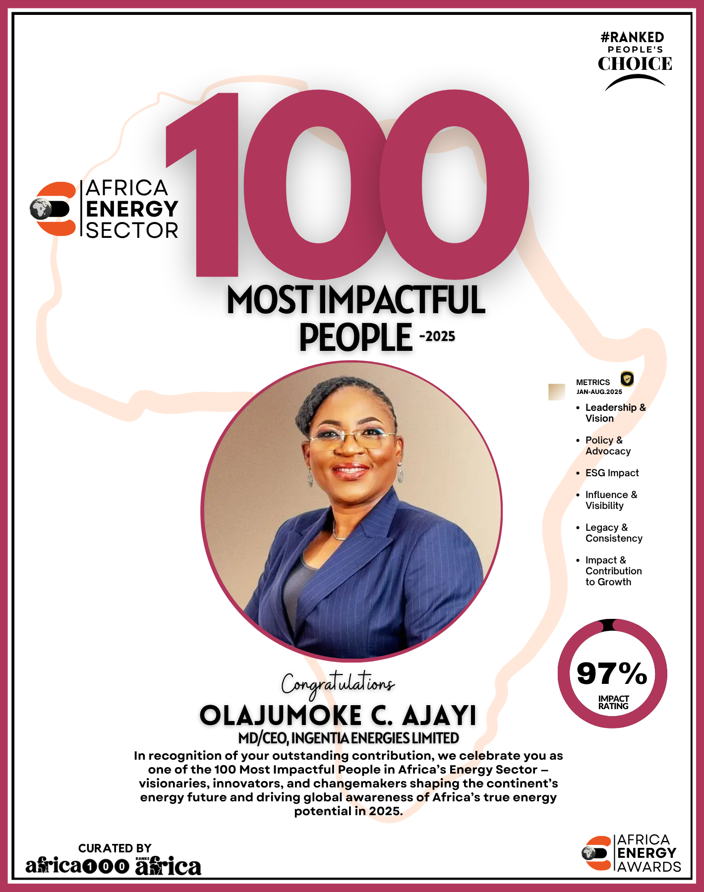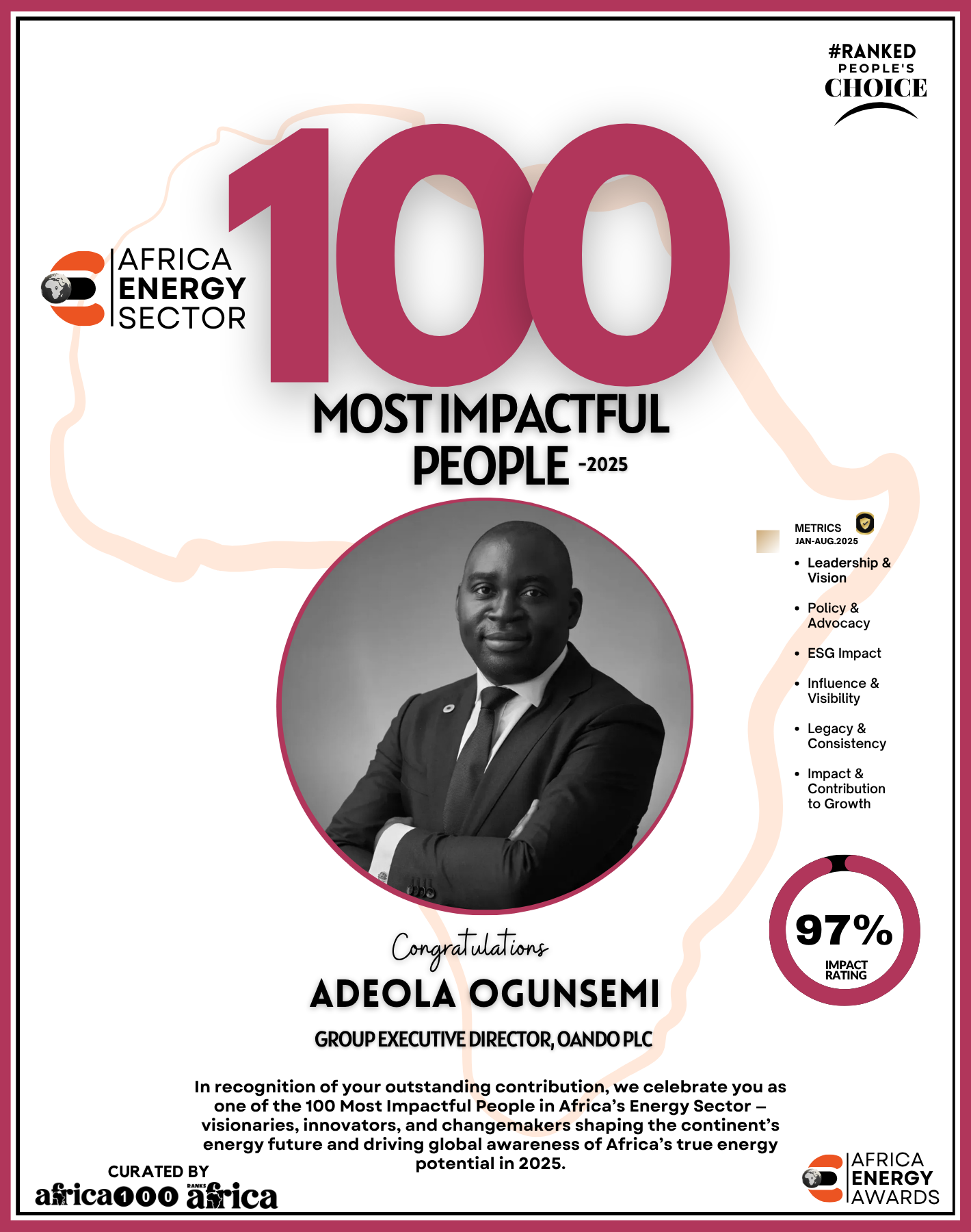 Together, They Power the Continent, from oil rigs to solar farms, boardrooms to policy tables — The Energy 100 is more than a list. It’s a reflection of Africa’s unstoppable momentum. These individuals remind us that energy is not just about power — it’s about possibility.