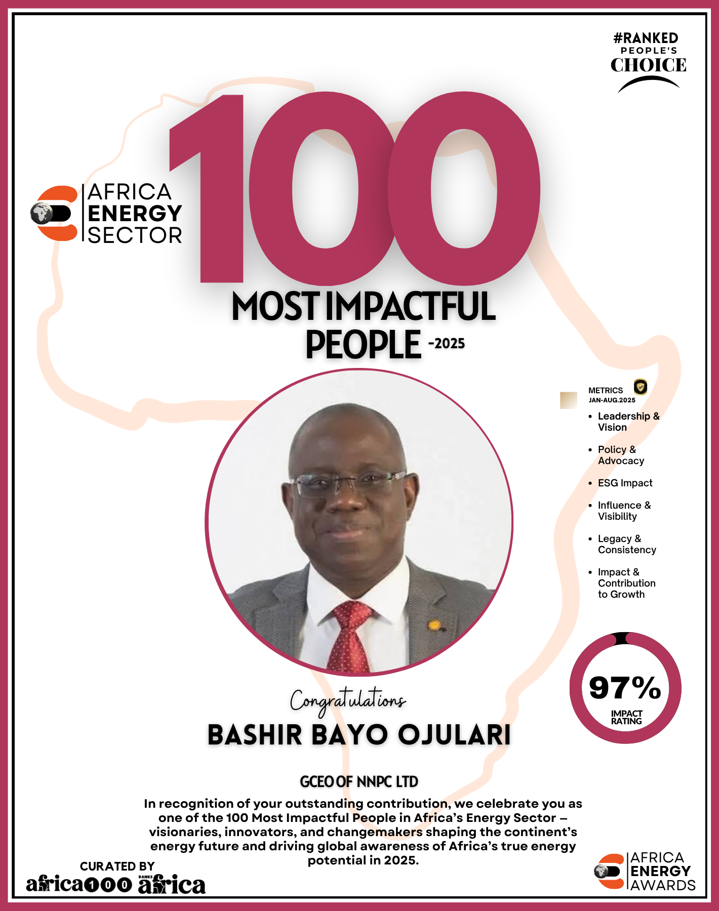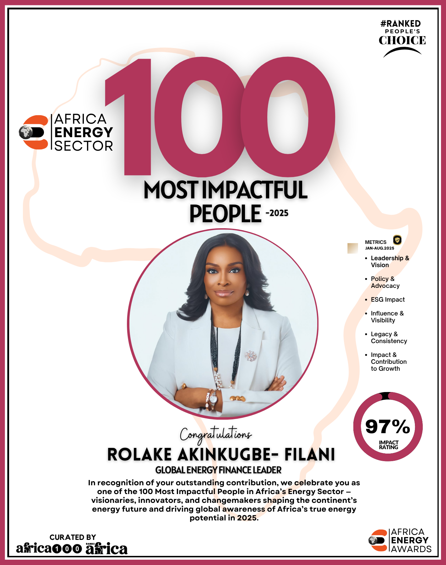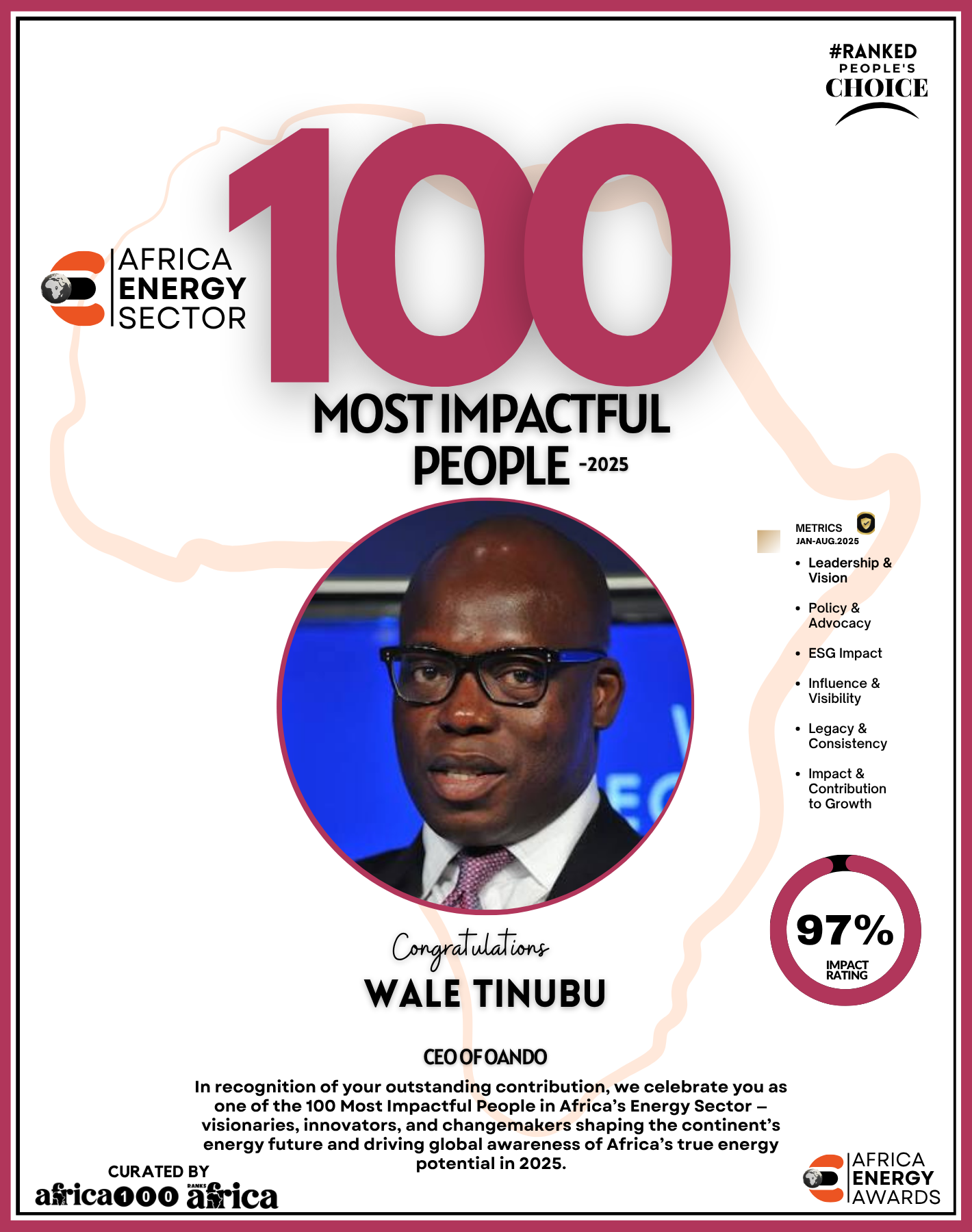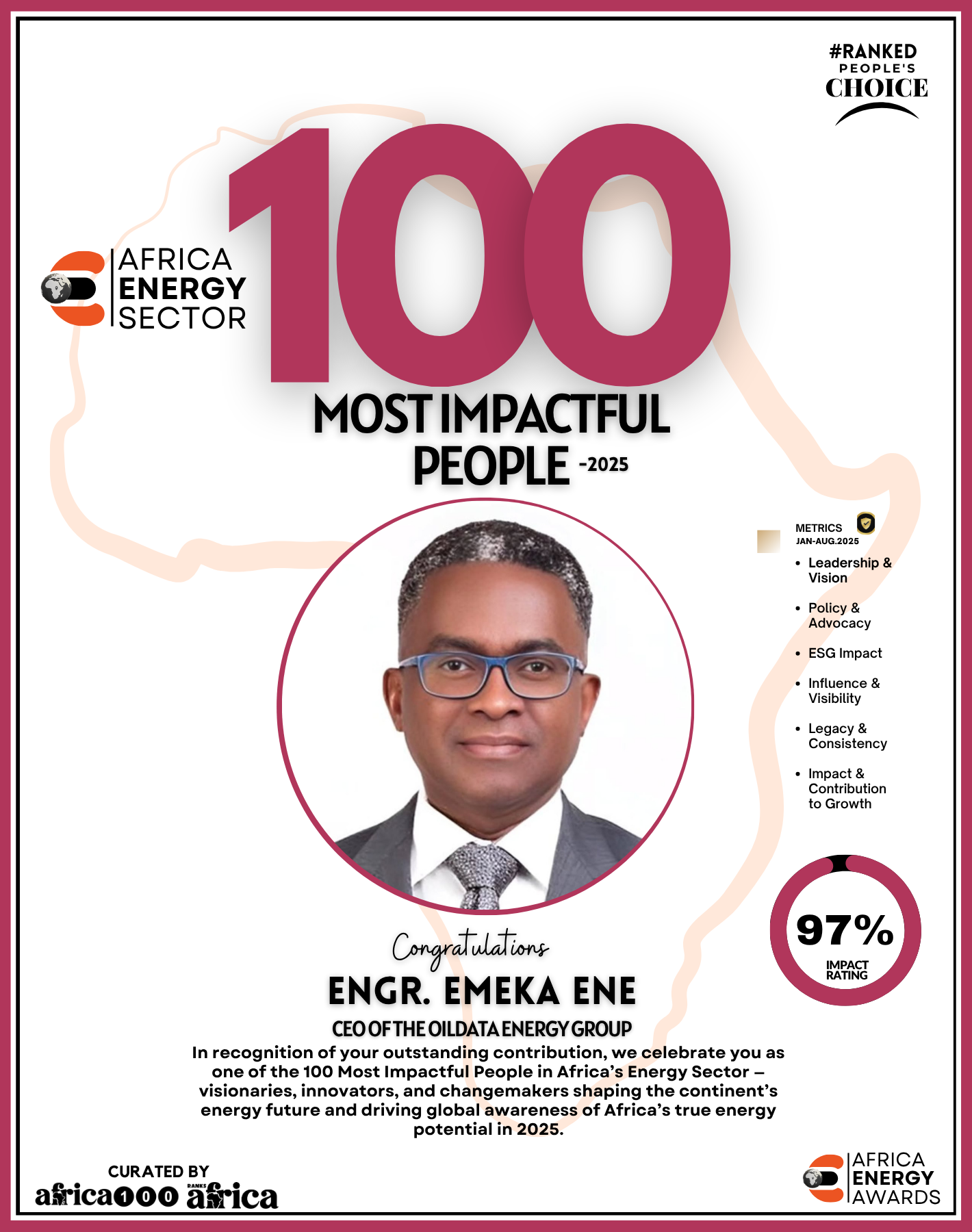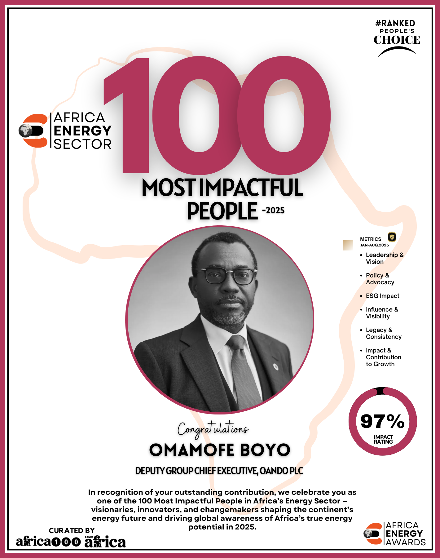 Together, They Power the Continent, from oil rigs to solar farms, boardrooms to policy tables — The Energy 100 is more than a list. It’s a reflection of Africa’s unstoppable momentum. These individuals remind us that energy is not just about power — it’s about possibility.