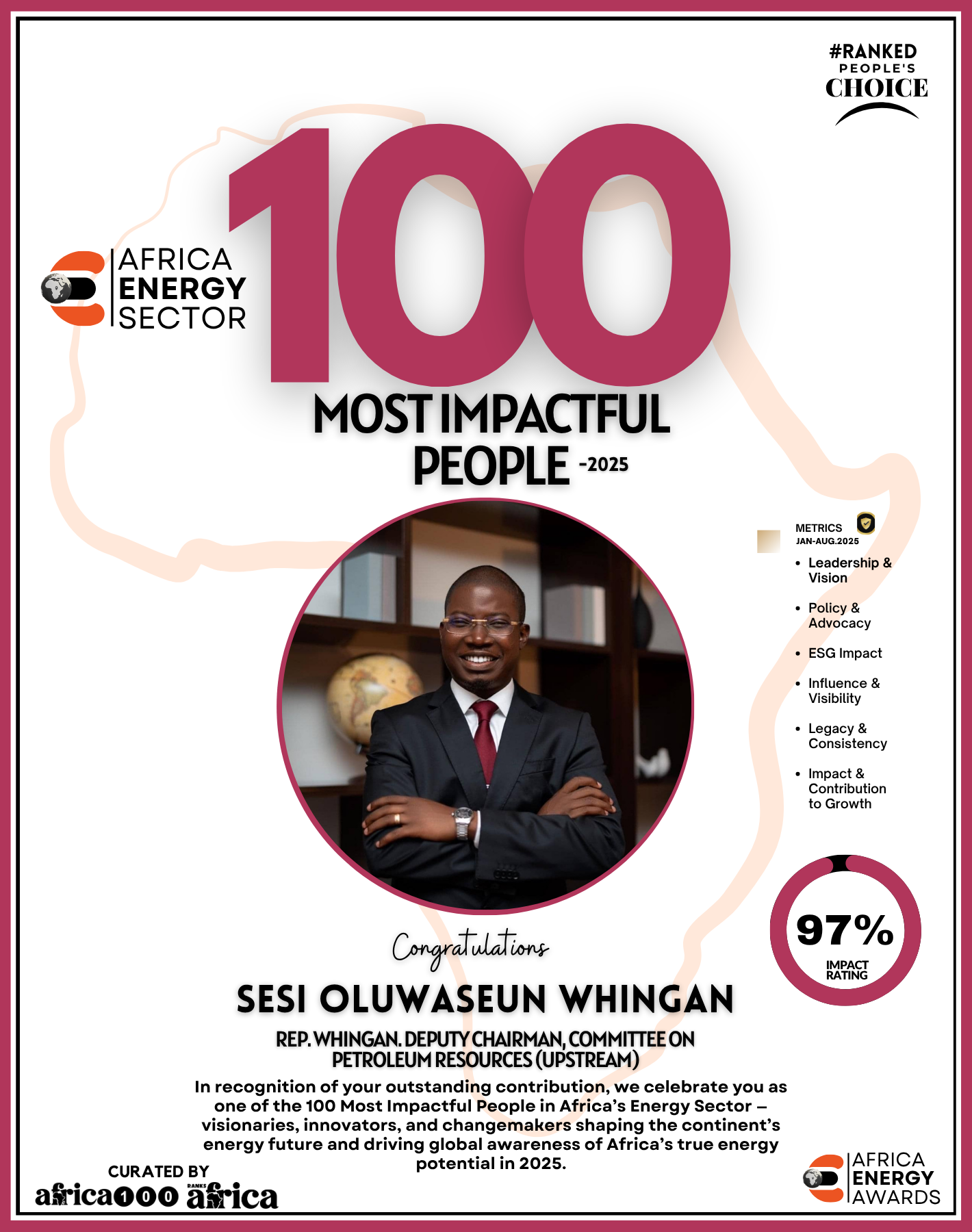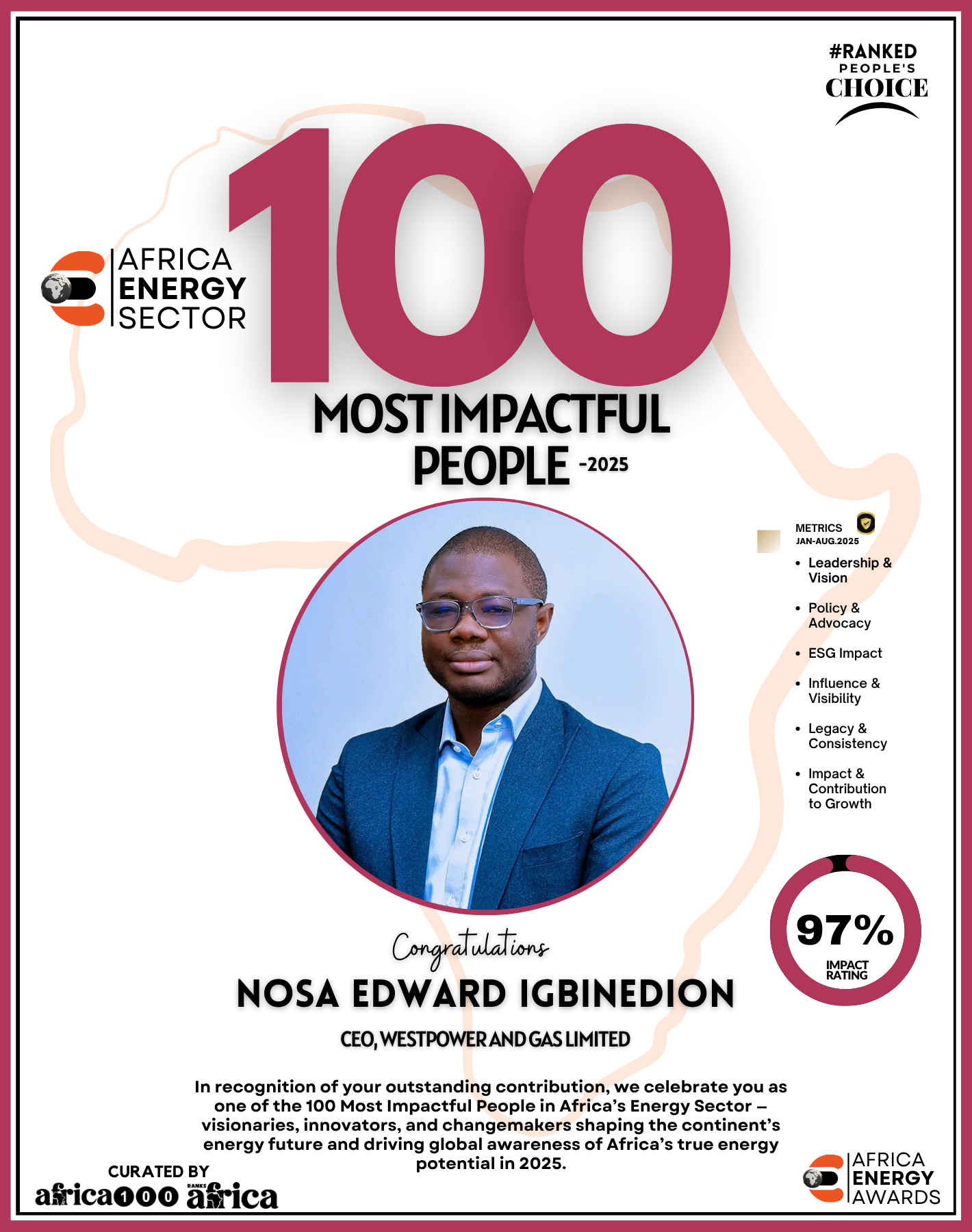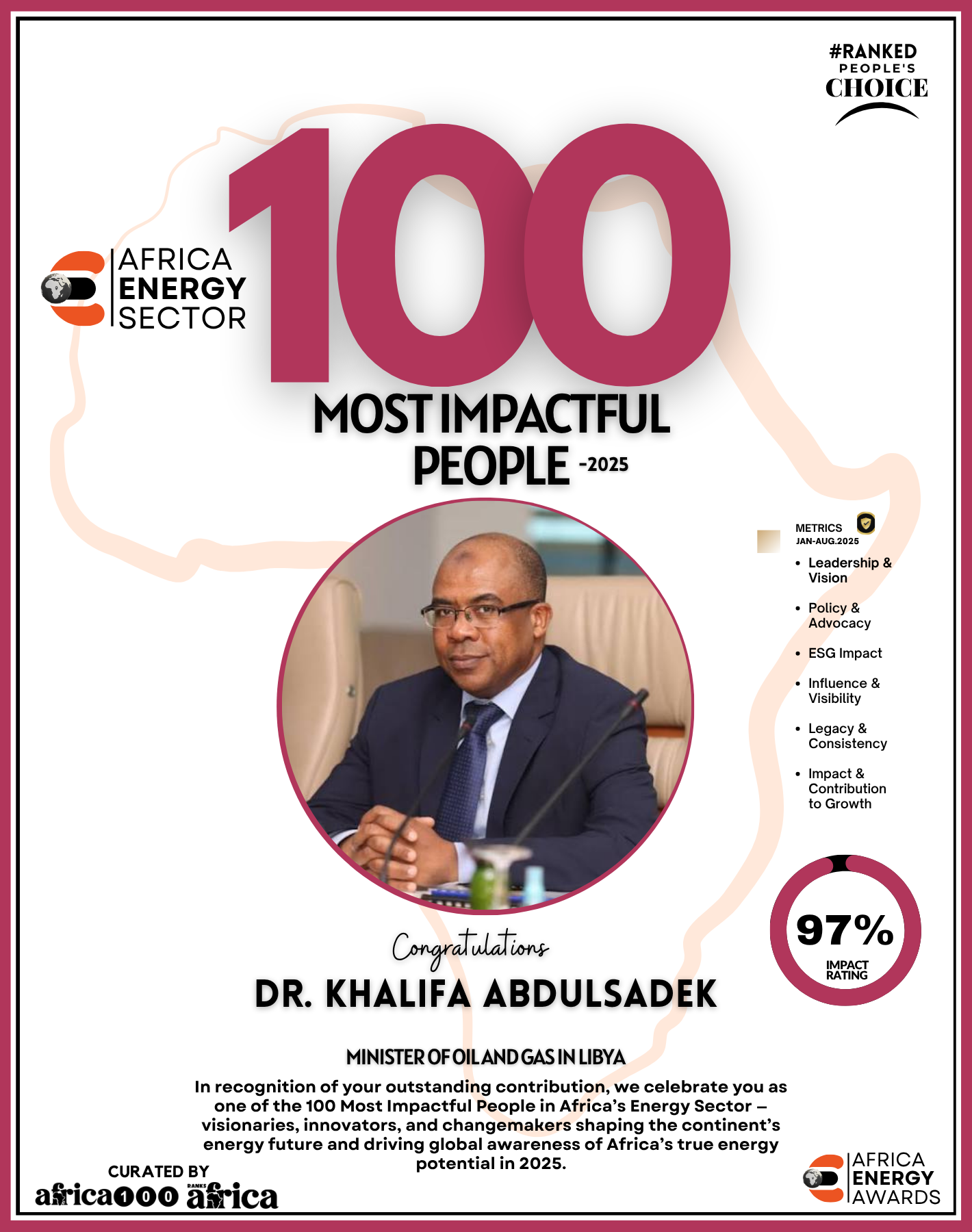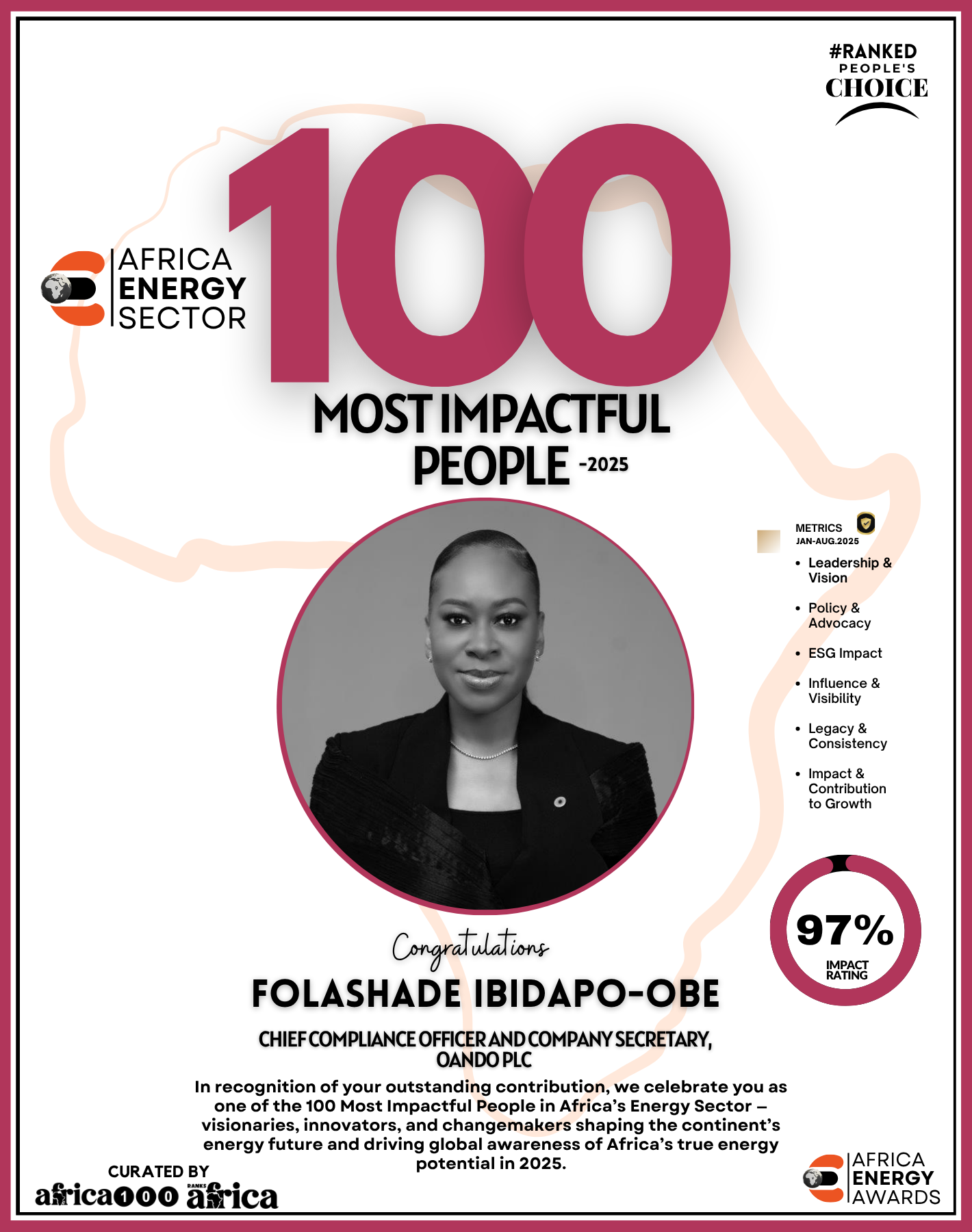 Together, They Power the Continent, from oil rigs to solar farms, boardrooms to policy tables — The Energy 100 is more than a list. It’s a reflection of Africa’s unstoppable momentum. These individuals remind us that energy is not just about power — it’s about possibility.