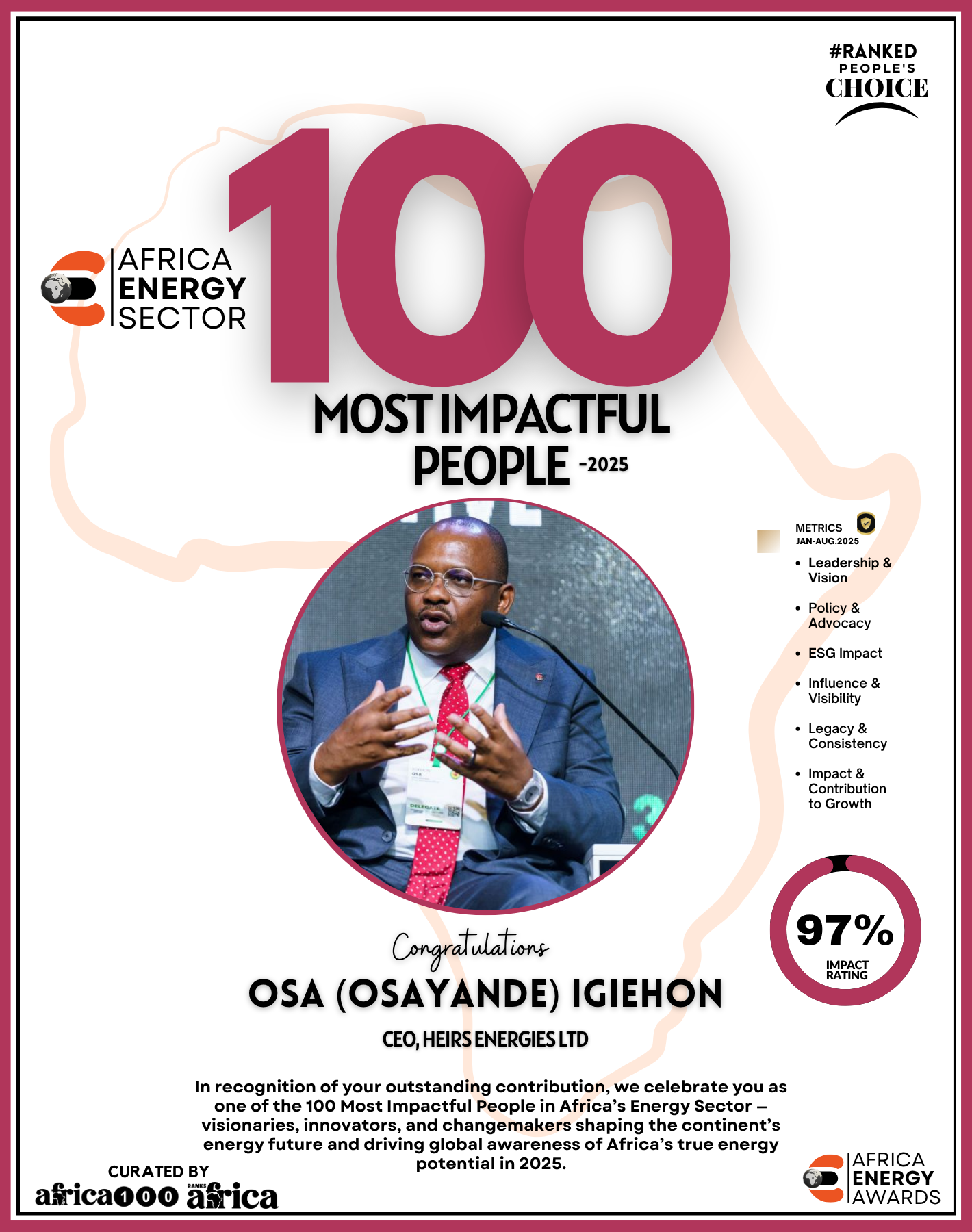 Welcome to The Energy 100: Africa’s Most Impactful People in the Energy Sector 2025 —